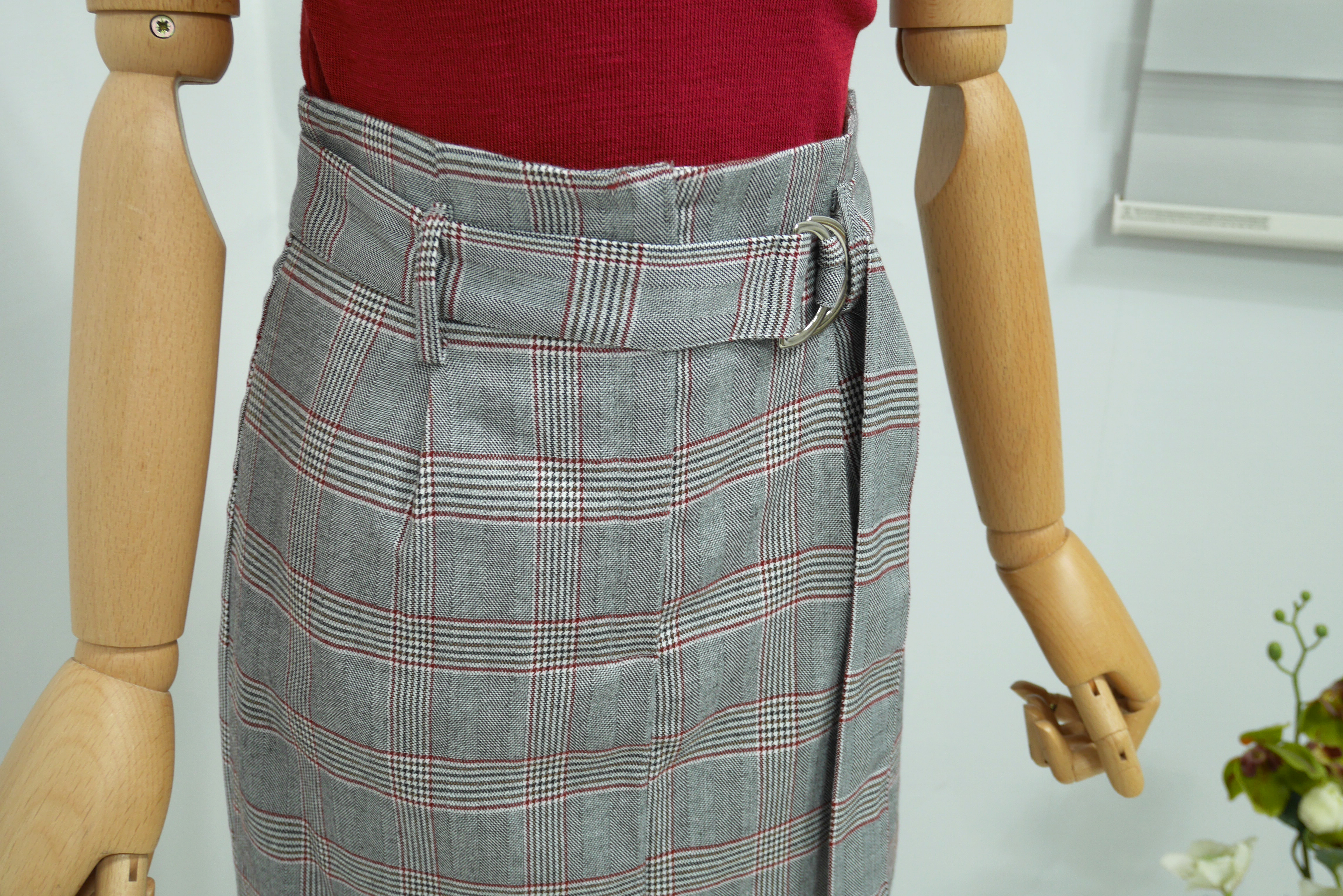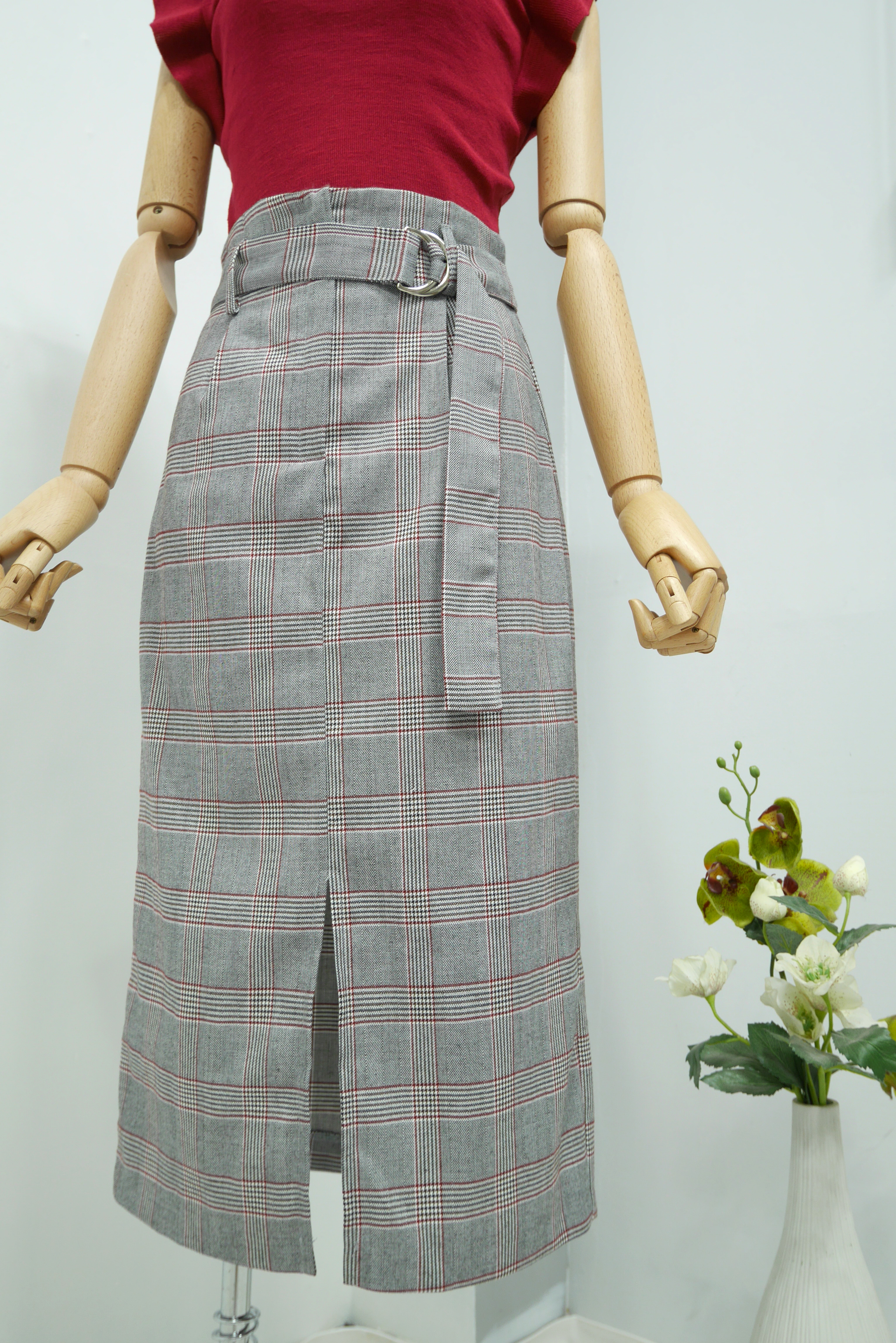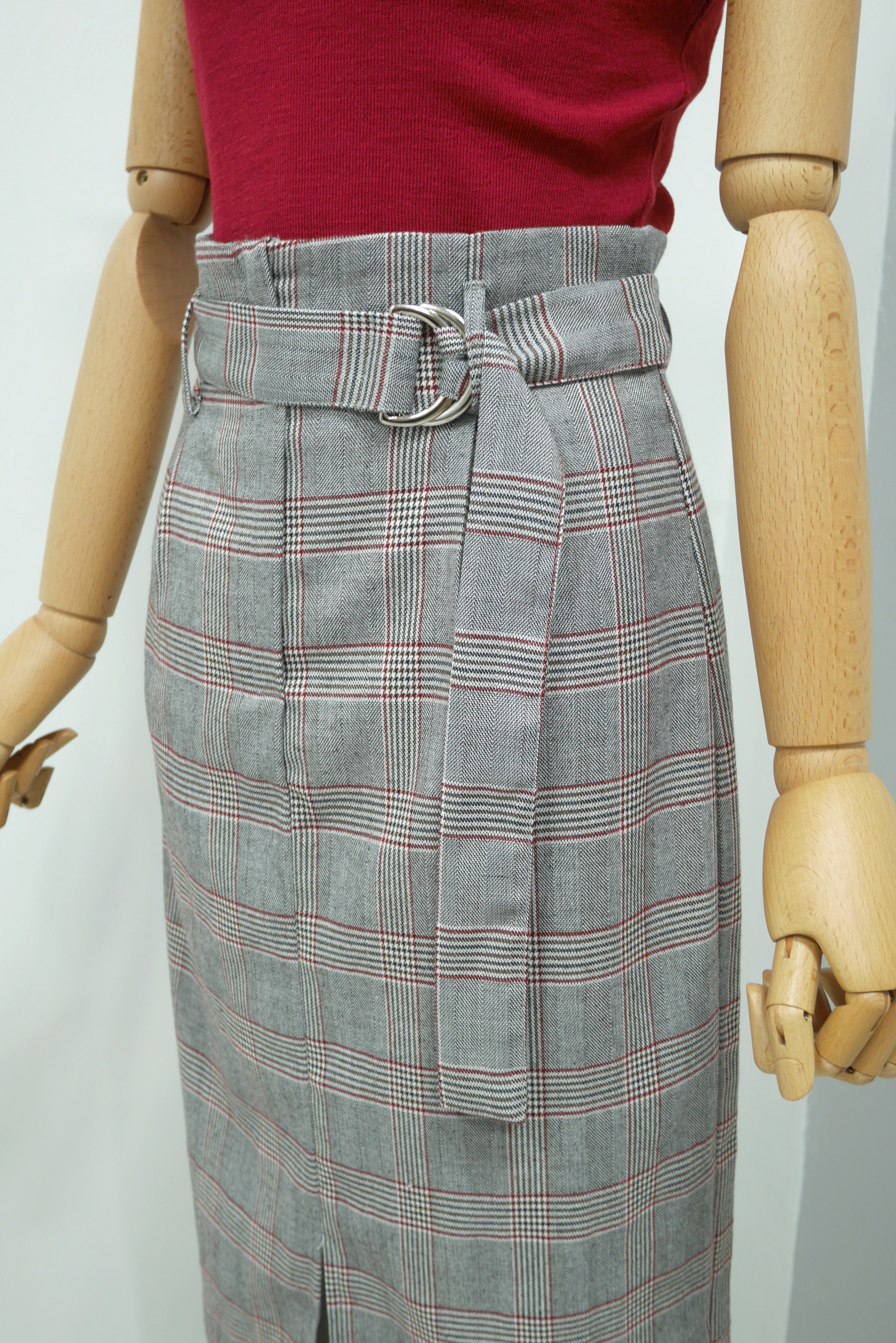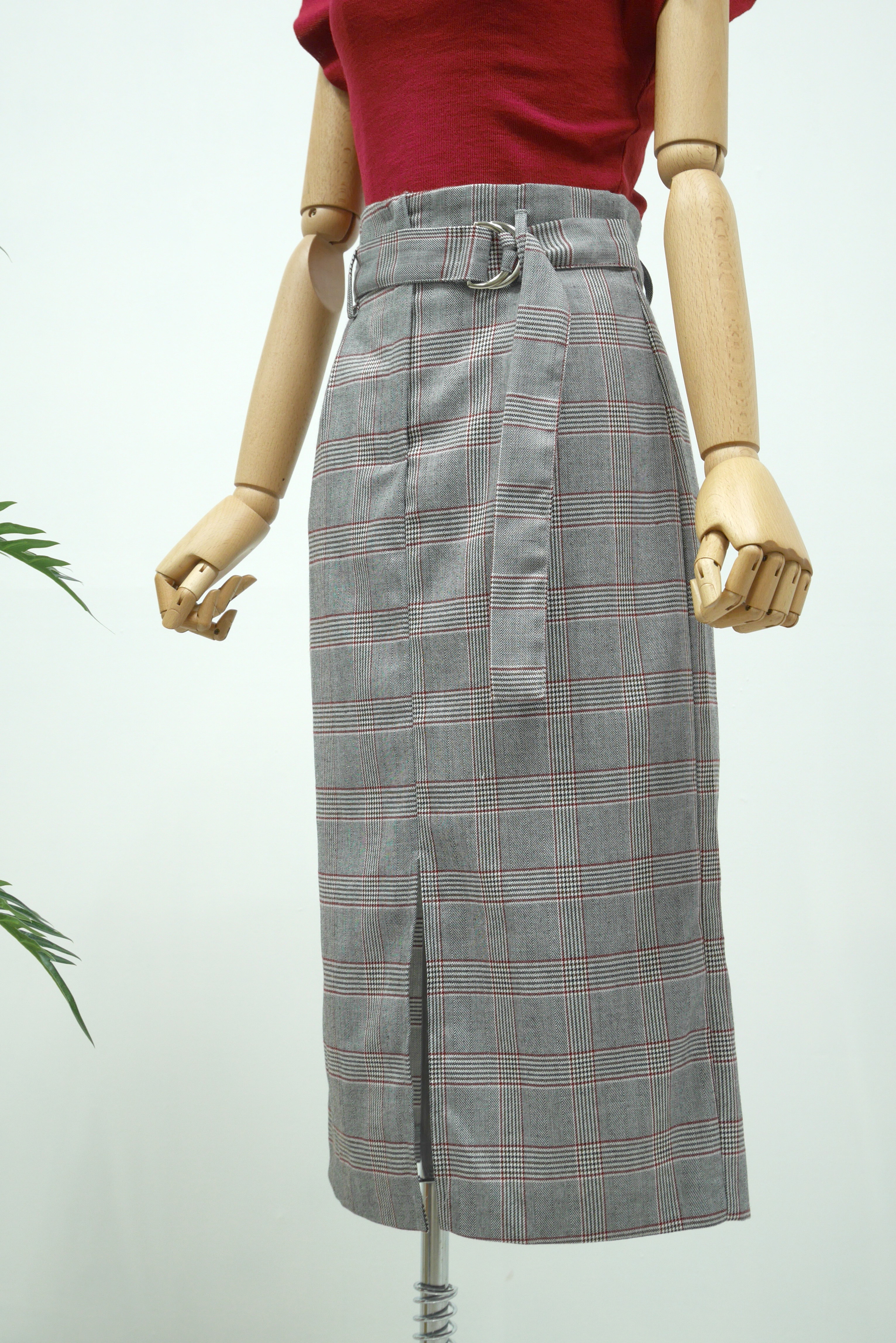 D Ring Belt Check Long skirt 2color Fall in advance