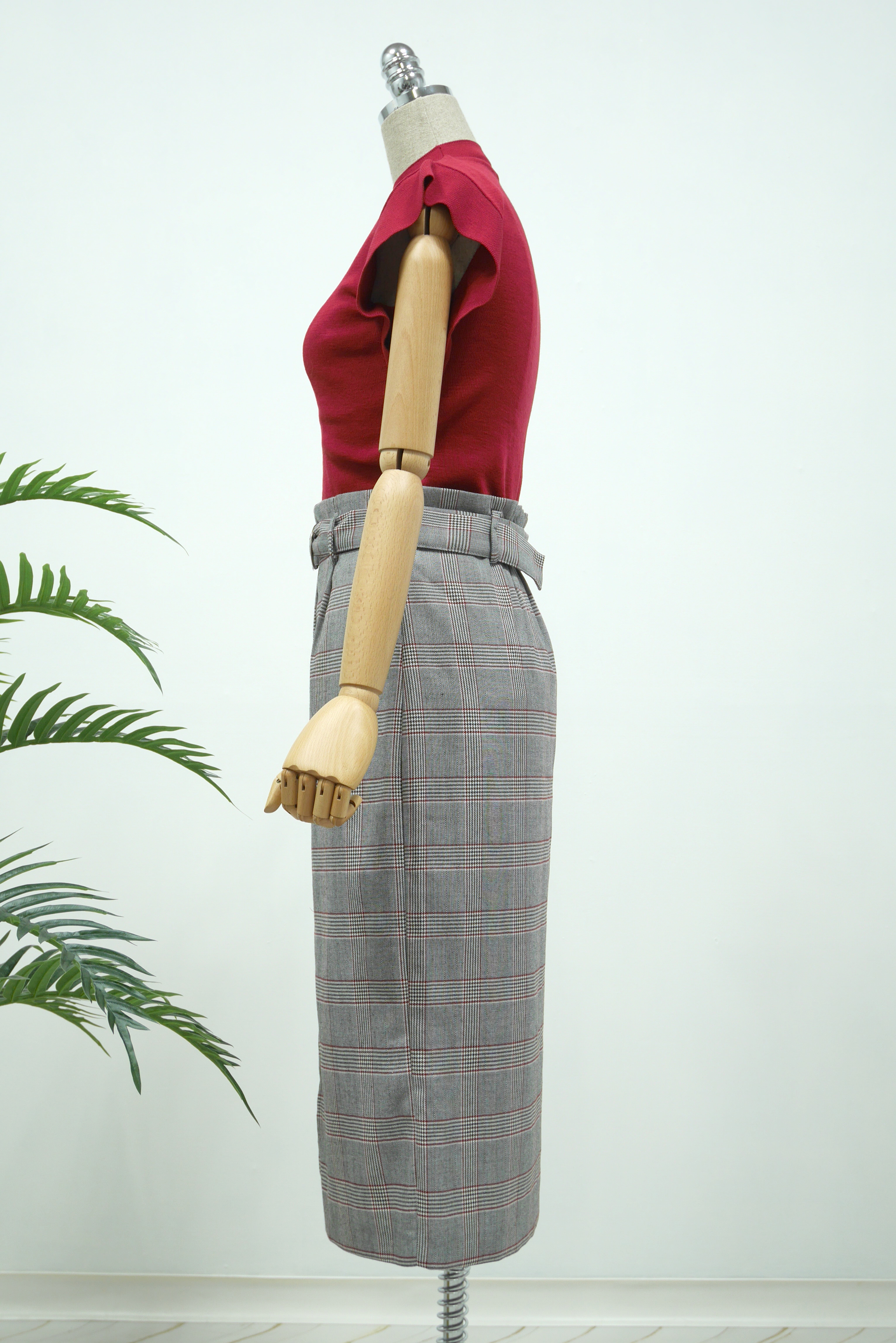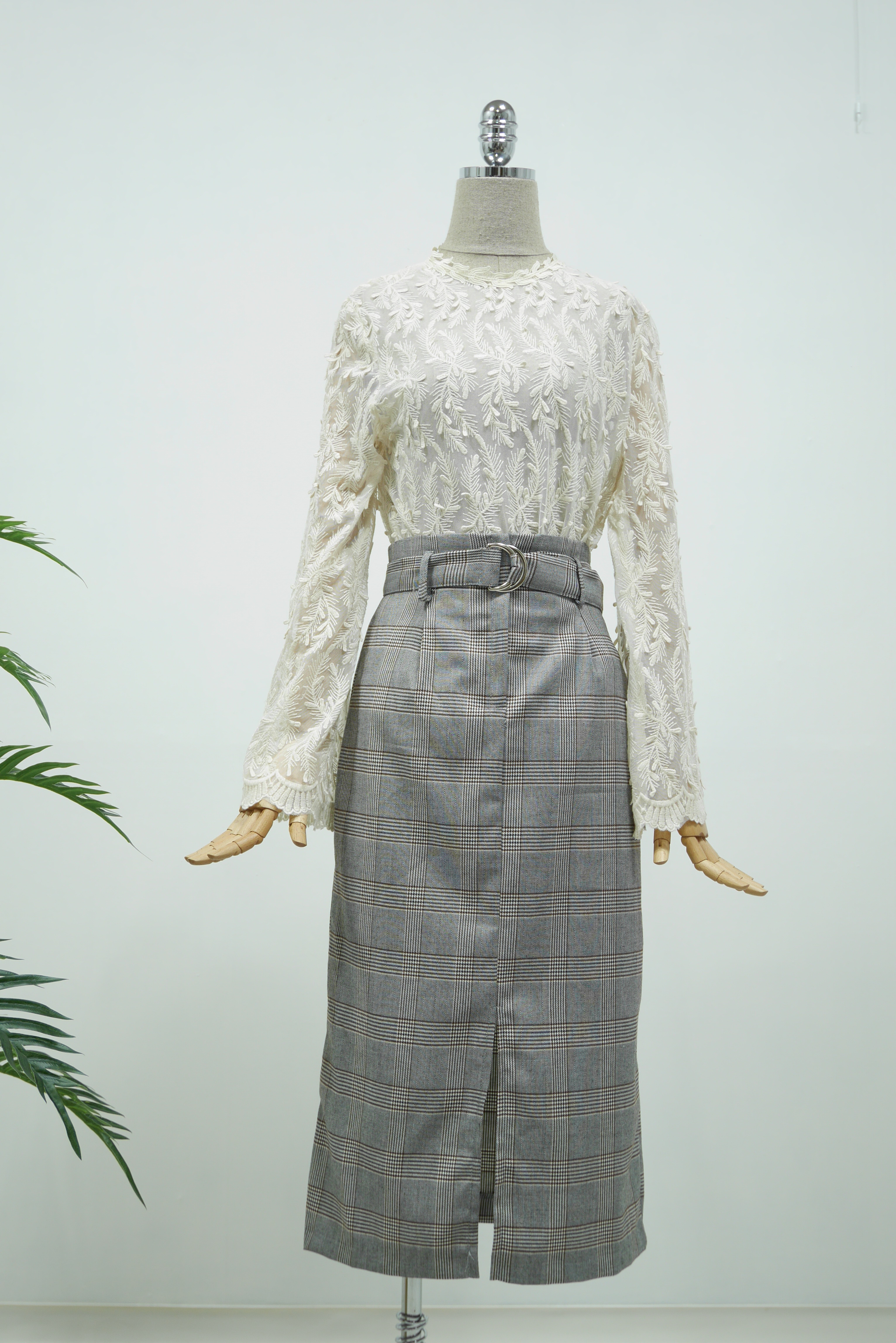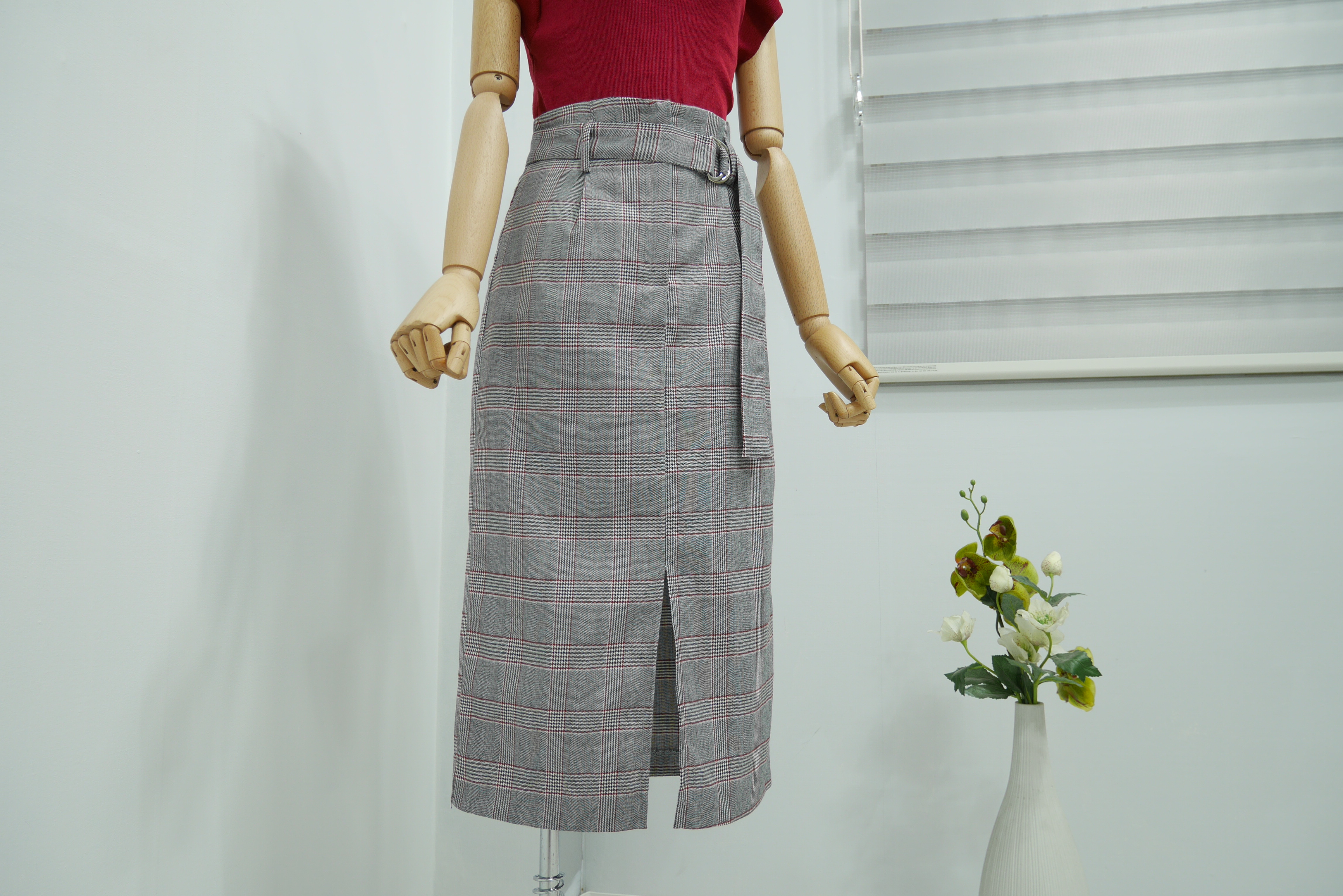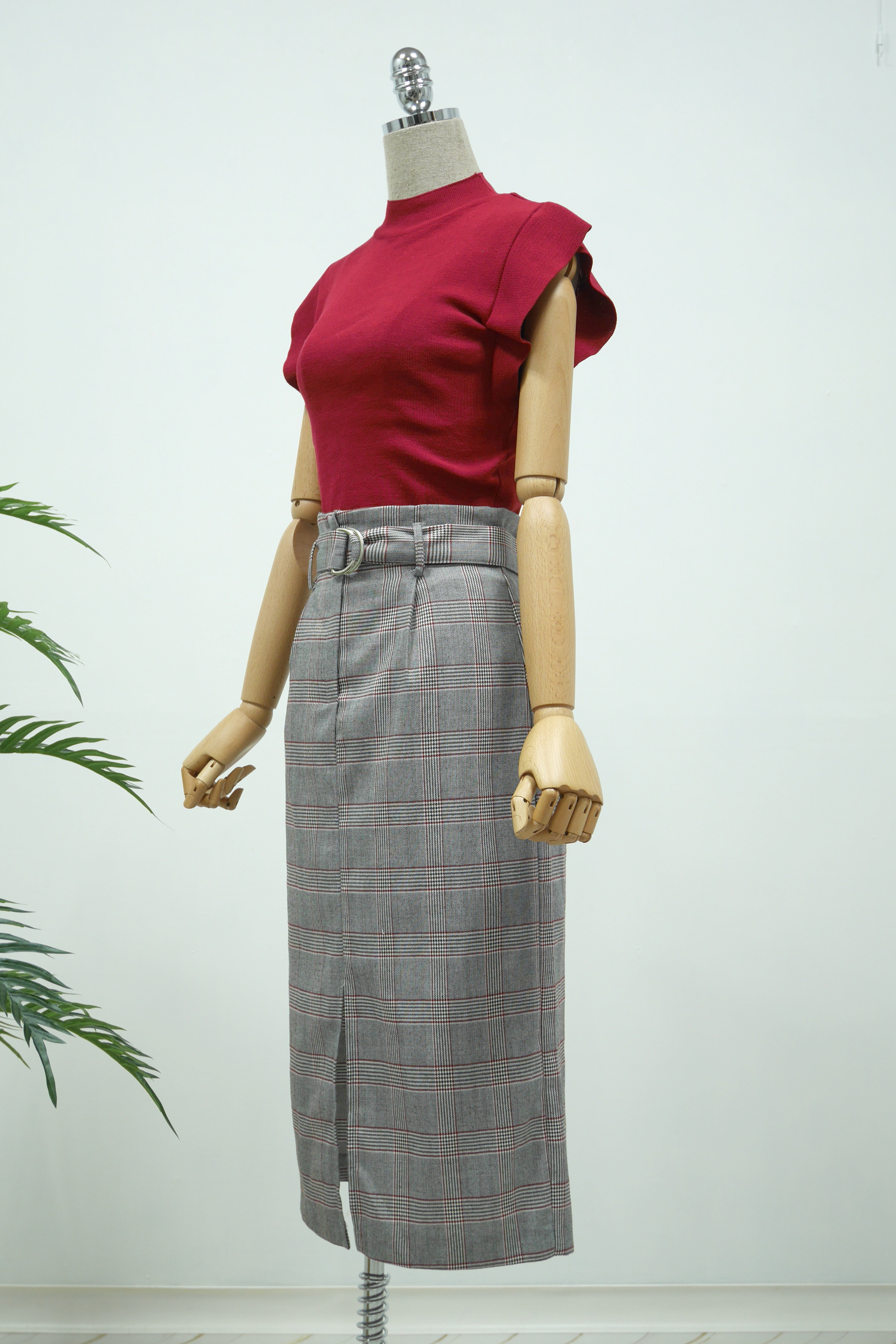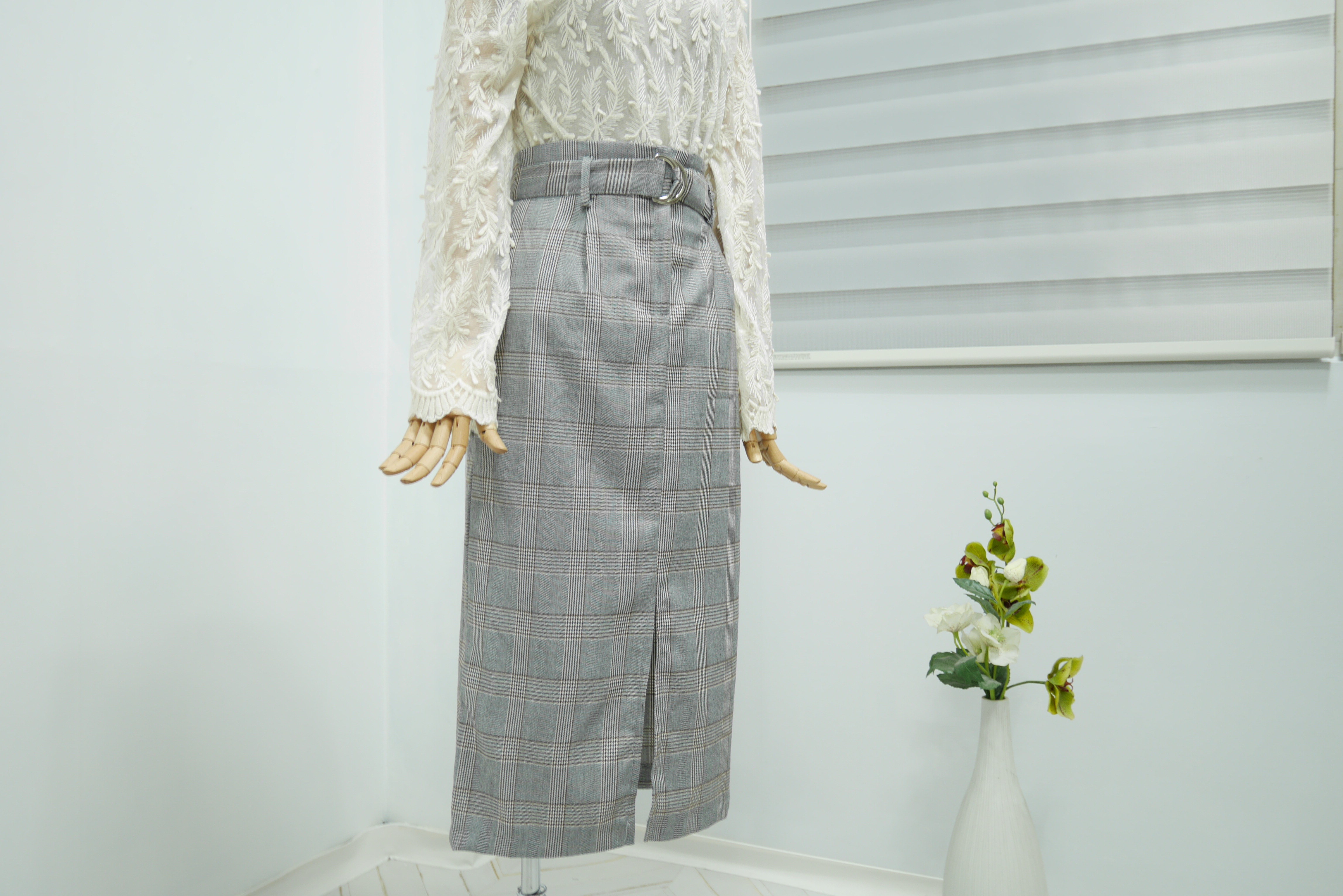 D Ring Belt Check Long skirt 2color Fall in advance