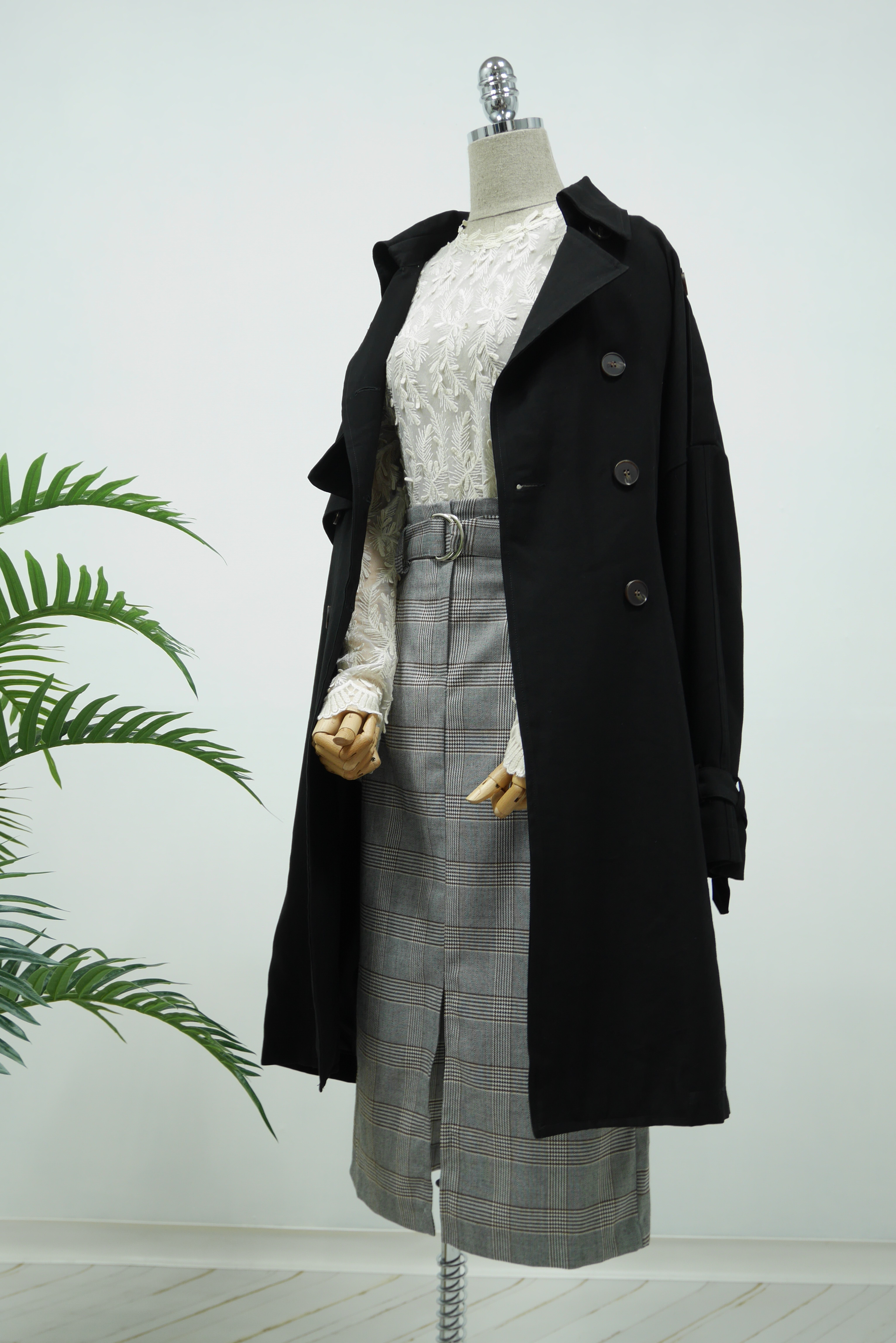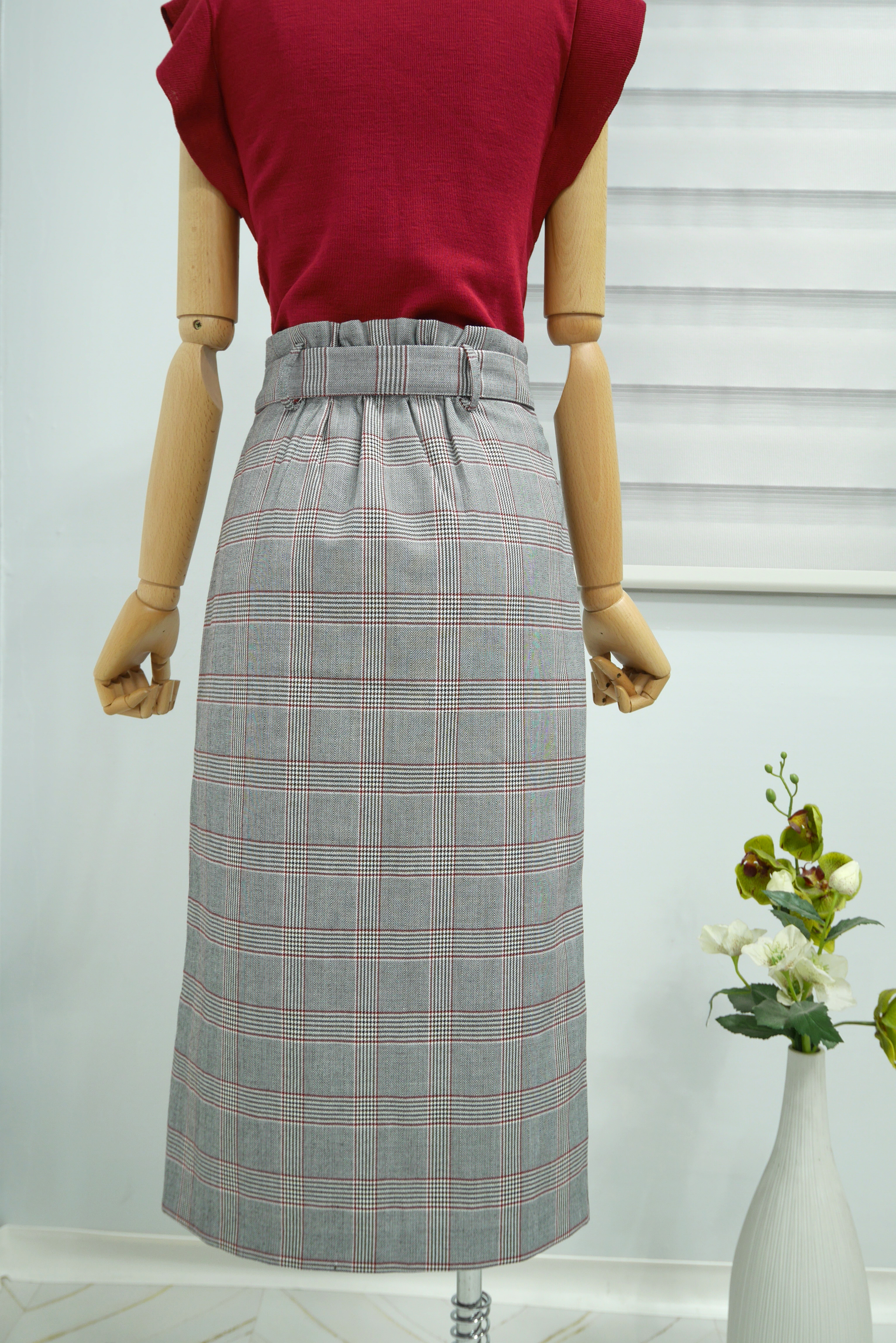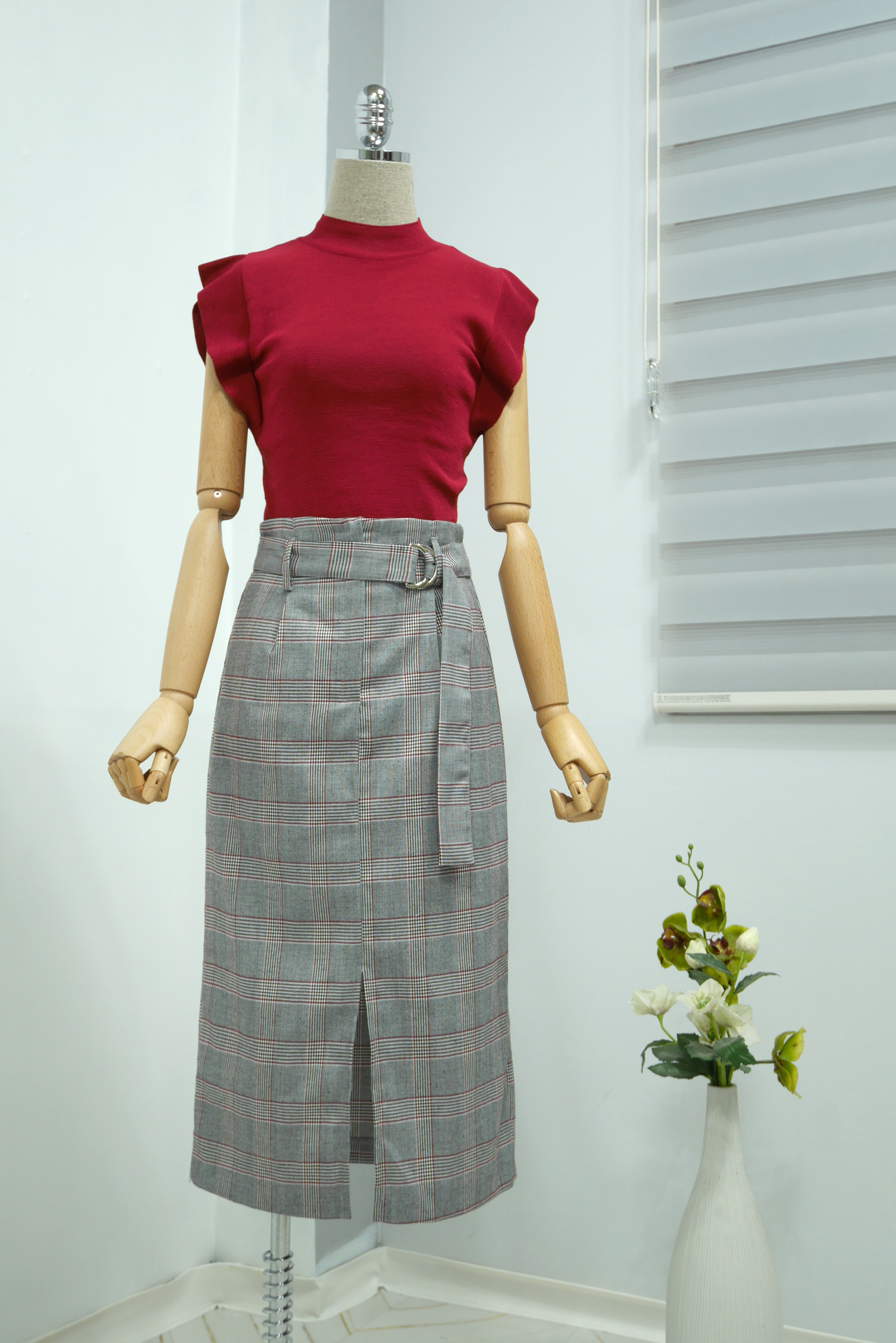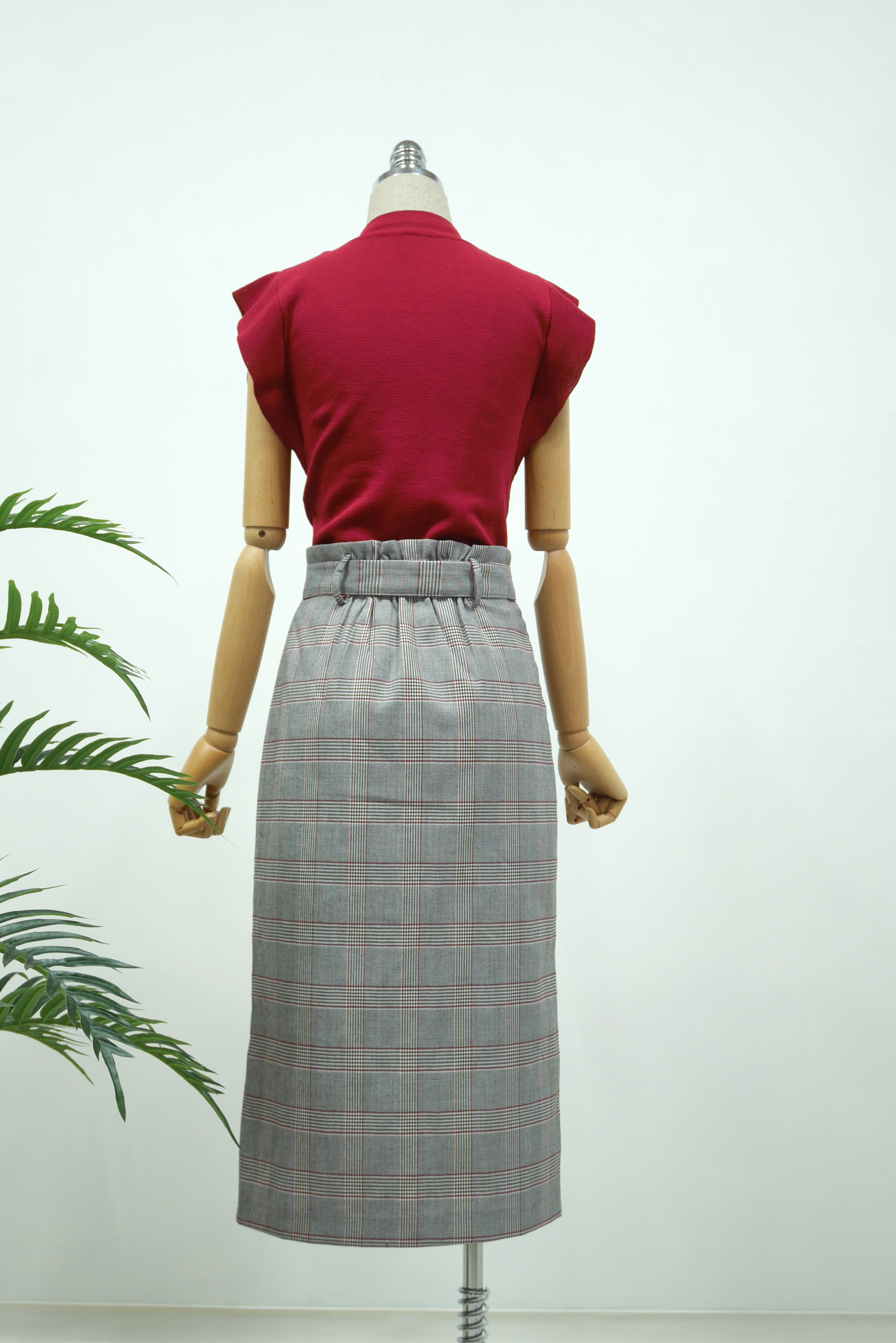 D Ring Belt Check Long skirt 2color Fall in advance