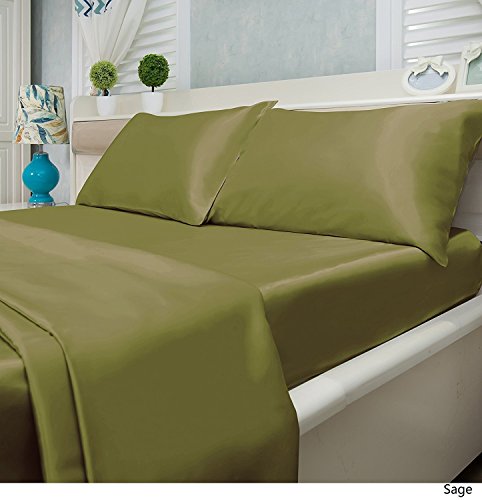 6-PC King Size Satin Sheet Set, Includes 4 Pillowcases, Multiple Colors - Sage