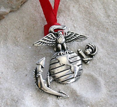 Pewter USMC Marine Corps Insignia Semper Fi Christmas Ornament and Holiday Decoration