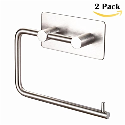 Self Adhesive SUS 304 Stainless Steel Toilet Paper Holder Wall Mount Contemporary Style Paper Towel Dispenser 3M Stick On Sticky Tissue Roll Hanger (2, Rectangle)