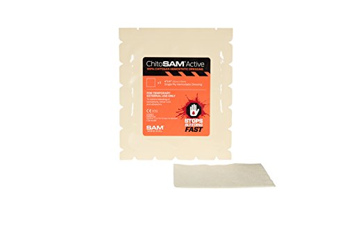 Designed to stop bleeding fast from wounds or lacerations, this 3-inch x 6-foot Chitosan Hemostatic Dressing produced by Sam Medical for Sawyer Products is extremely effective and safe, plus it can be broken down and digested by the body. The large 3-inch x 6-foot bandage can be cut to size as needed. Unlike most hemostatic dressings, Chitosan is made of non-woven, 100% pure chitosan. Independent tests have shown the Chitosan Hemostatic Dressing performs up to 25% better than a leading chitosan gauze. With this increased efficacy, you can use less gauze to achieve the same hemostatic result. Additionally, the unique "tear anywhere" packaging allows quick access to the product for fast application. Chitosan is well documented as an antimicrobial agent against fungi, bacteria, and viruses including MRSA (methicillin resistant staphylococcus aureus), VRE (vancomycin-resistant enterococci), S.aureus (staphylococcus aureus), and E.coli (Escherichia coli). This bandage contains no nanoparticles or any particles. Since 1984, Sawyer Products has offered the best, most technologically advanced solutions for protection against sun, bugs, water & injuries - everything from first aid kits developed for wilderness use to topical insect repellents that use time-released liposome technology.Feature