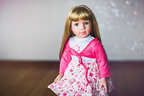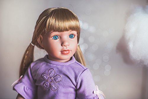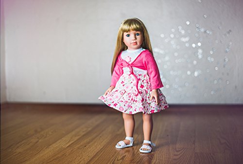 Morning Star is a wonderful companion for girls ages 4 and up. This blonde girl doll is dressed for a day on the town with her purse in tow ready for adventure. Standing 18" tall her body is plush and her limbs vinyl and posable. She is compatible with American Girl, Our Generation, and many other types of 18" sized dolls with swappable clothing and accessories to enhance your little girl's play time. Her doll clothes and doll accessories are high quality and built to stand up to vigorous hours of play. Playing dolls is a time honored tradition, but imagine your child snuggling up to you at bedtime for you to read a chapter from her very own fairy tale staring Morning Star and her together in magical adventures. Starpath Dolls' unique value is in these amazing personalized stories written by award winning authors with up to 20 personalized qualities that can be tailored to your child in the story. We stand behind the quality of our products and we are so convinced you will love our dolls and definitely our unique one of kind stories that we offer a 100% money back satisfaction guarantee.Feature