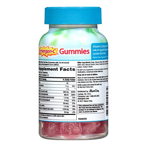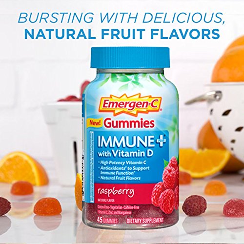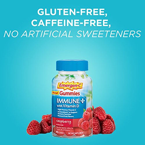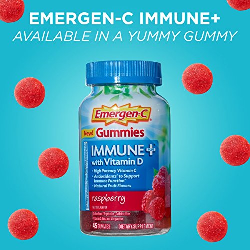 Includes one bottle with 45 Emergen-C Immune+ Vitamin Gummies in Raspberry flavor