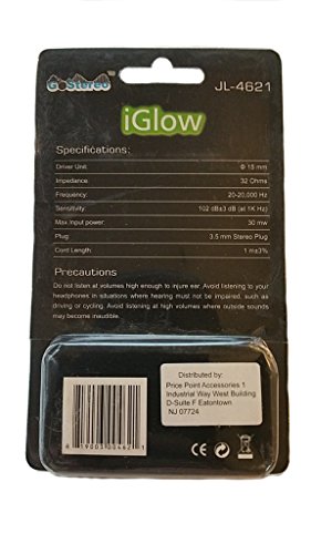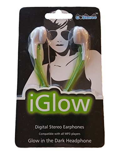 -. Binding : Electronics -. Brand : IGLOW Glow in the Dark Headphones -. EAN : 0819003004621 -. Feature : Brand Name IGLOW Glow in the Dark Headphones Item Weight 1.6 ounces Product Dimensions 6.1 x 3.3 x 1 inches Item model number GREEN -. Label : Go Stereo -. Manufacturer : Go Stereo -. Model : GREEN -. MPN : IGLOWBLK -. PartNumber : IGLOWBLK -. ProductGroup : Network Media Player -. ProductTypeName : ACCESSORY_OR_PART_OR_SUPPLY -. Publisher : Go Stereo -. Studio : Go Stereo -. Title : IGLOW Mp3 Ipod Sterero Earphones -. UPC : 819003004621