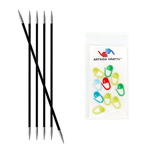 - Bundle includes 1 Knitter's Pride Karbonz Double Pointed 8-inch (20cm) Knitting Needles; Size US 6 (4.00mm) with 10 Artsiga Crafts Stitch Markers 110132