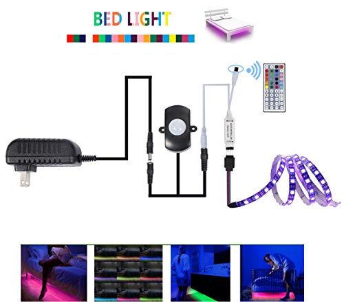 Topled Light LED Bed light Kit,RGB PIR Motion Activated LED Strip Sensor Night Light with Automatic Shut Off Timer For Bedroom,Wardrobe,Hallway(Single Bed)