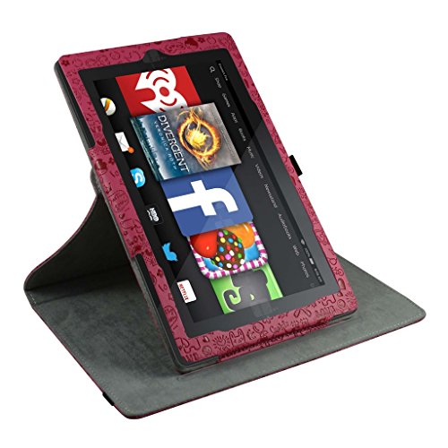 Fire 7 5th Generation Rotating Case,Mama Mouth 360 Degree Rotary Stand With Cute Lovely Pattern Cover For 7" Amazon Fire 7 Android Tablet 5th Generation 2015 release,Rose Red