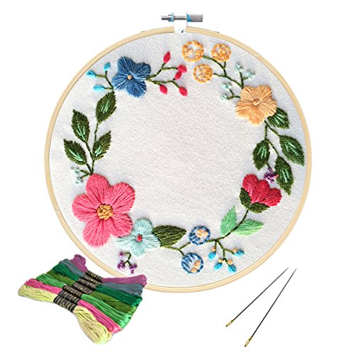 Unime Embroidery Starter Kit with Partten Full Range Embroidery Kit with Embroidery Cloth, Embroidery Hoop, Color Threads, Needles