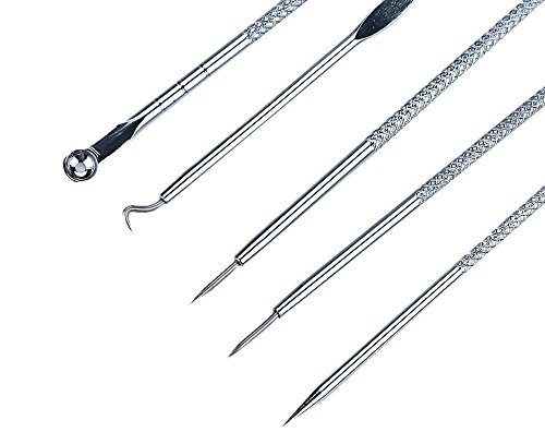 -. Title : Stainless Steel Silver Tool Blackhead Acne Needle Professional Antibacterial 5pcs Black Head Pimples Extractor Tool Skin Care