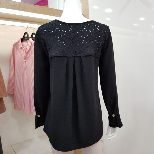 등쪽 면자수 레이스 포인트를 주어 여성스러운 분위기를 연출할수있습니다.