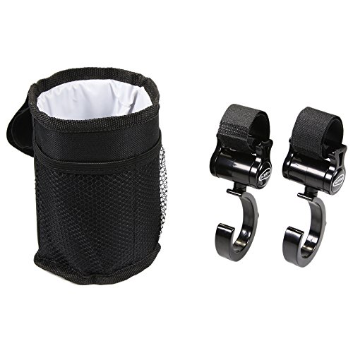 ilovebaby Stroller Hooks -Multi-Purpose - Hanger for Baby Diaper Bags or Groceries, Easy to Mount, Solid- Pack of 2, Color Black - Stroller Cup Holder with Pocket, Waterproof, Velcro Attachment, Black