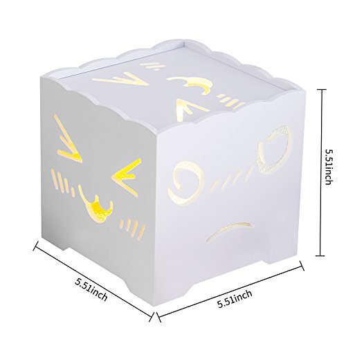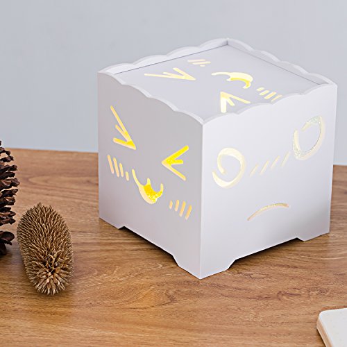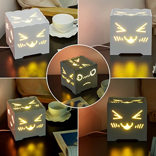 LOVELY FACES: It has 5 super cute faces made by fibreboard in 5 sides, and it lights up the corner and creates a comforting place with our fibreboard shade