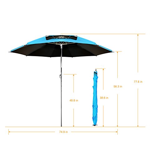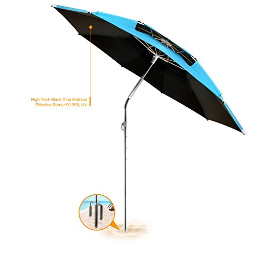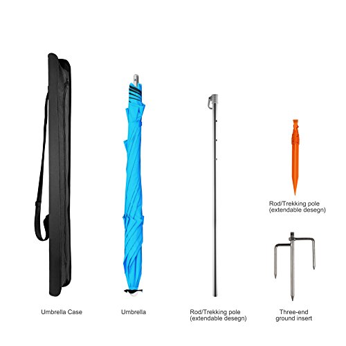 About UsWhat is a good umbrella? It is attractive in price and quality, and brings the most authentic feeling to you, as well as brings the best feeling in different environments. Meanwhile it can keep out the sunshine and ultraviolet ray, and provides the greatest protection with all the angles without fearing wind and rain. It is installed conveniently and simply, if you like our umbrellas, please don't hesitate, you will experience the pleasant cool with us. We will be certain to make you satisfied. Usage place Beach, picnic, camp, go fishing, swimming pool, yard, golf course and other outdoor places. Summary of Product features(1) Ultra-portable aluminum alloy umbrella, strong preventing wind property, long service life. 2) The first true 360°rod, it is very easy to adjust the different directions according to your need. 3) U-type design specially for fishing enthusiasts, and provide a broader vision and room for improvement. Double cloth( waterproof layer +210D oxford cloth layer) and nanometer water umbrella 4) Having vinyl coating which prevents ultraviolet ray. It may prevent 99.99% ultraviolet ray, and contributes to protect our skin and body, you will feel cool and comfortable under the umbrella. 5) easy to carry and convenient 6) Easy installation, easy dismounting Package includes: 1×umbrella cover 1×umbrella1×rod 1×nut 1× one end inserting the ground 1×three ends inserting the ground 3× preventing wind bottom inserting One year warranty If you have the problem of any product, please contact us any time, we will change a new one for you.
