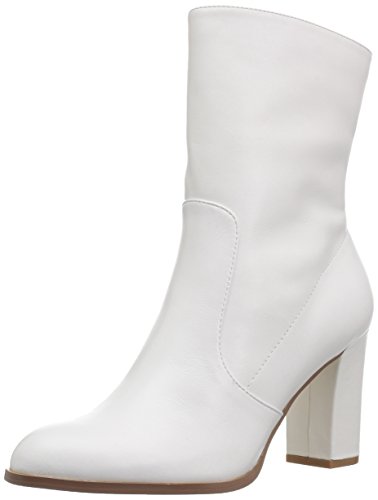 -. Feature : White leather mid-calf bootie with block heel