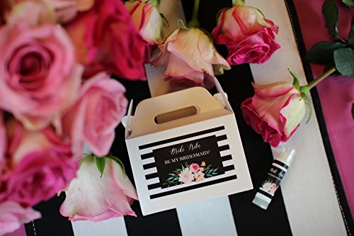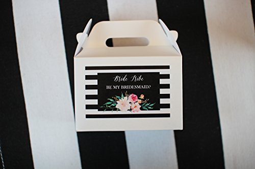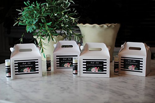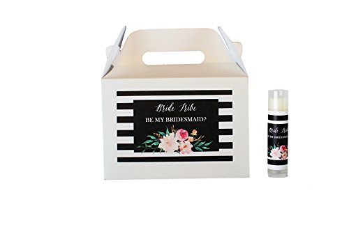 WILL YOU BE MY BRIDESMAID BOX - Each chic gable box and lip balm set includes a matching designed black and white striped floral label with the popular phrase bride tribe and a written message that asks the big question Be My Bridesmaid?