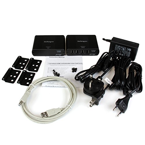 The USB2004EXT2 4-Port USB over Cat5 Extender lets you extend USB 2.0 connections over distances up to 100-meters (330-feet) over standard Cat5 or Cat6 UTP cabling. Backward compatible with USB 1.x devices, the extender allows up to 4 of almost any kind of USB device to be placed at remote locations away from the host computer system. With data transfer rates up to 480 Mbps and 500 mA of power per port (with the use of an external power adapter at the remote end), the USB extender makes for a fast, easy-to-setup and versatile USB extension solution, with a sleek metal enclosure that ensures durability in all types of operating environments. Backed by a Startech.com 1-year warranty and free lifetime technical support.Feature