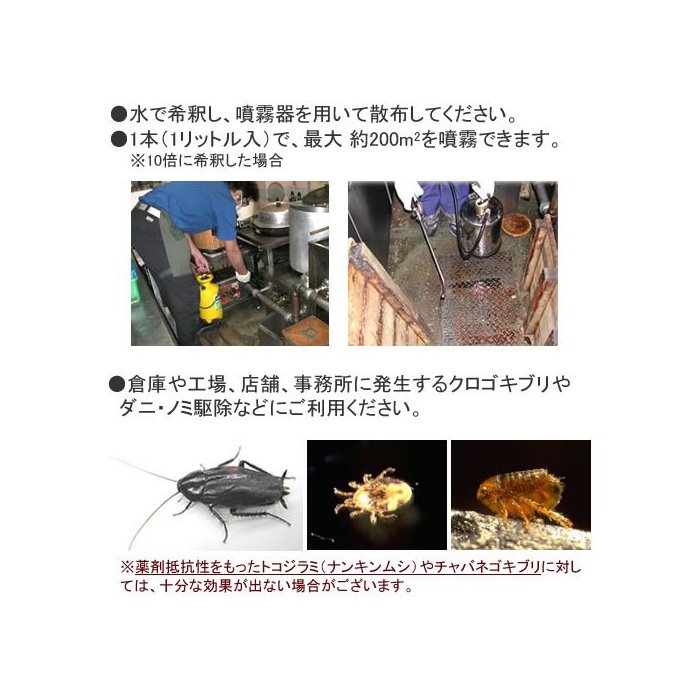 창고나 공장,점포,사무소에 발생하는 바퀴벌레(크로 바퀴벌레)나 예 다《니노미》의 구제에 이용 하십시오.우수한 속효성을 발휘합니다.