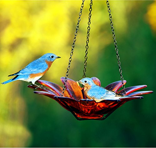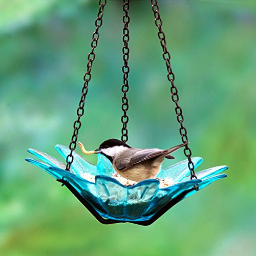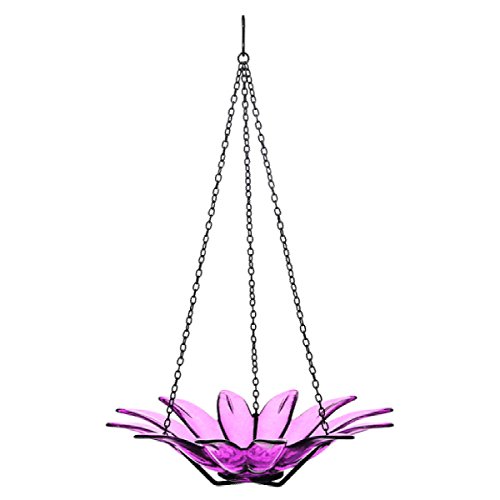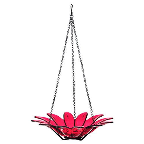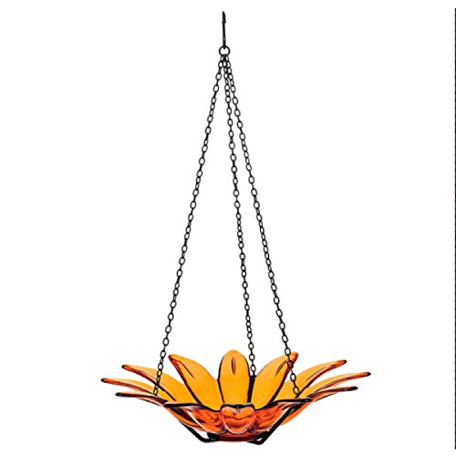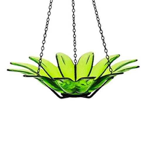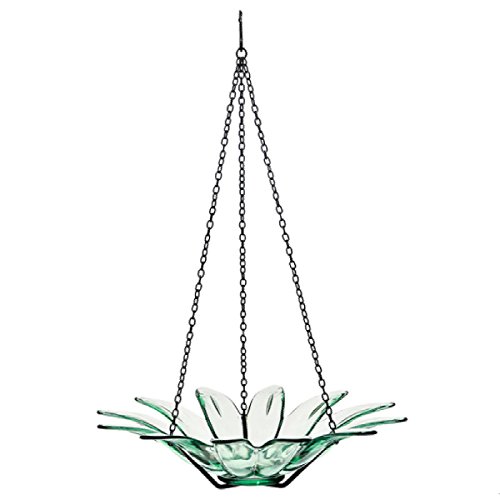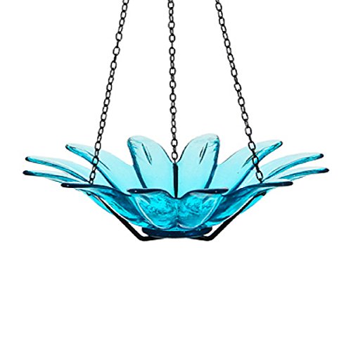 -. Brand : Romantic Decor & More -. Feature : Made of Recycled Glass and Metal / Also use as a Mealworm Feeder, Jelly or Suet Container / 12 in. Wide Daisy Glass Bowl / All Metal Parts Powder Coated for Long Lasting Finish / Specs: Width: 12 in. Length: 12 in. Chain Length: 20 in. Bowl Depth: 3 in. -. Label : Romantic Decor & More -. Manufacturer : Romantic Decor & More -. ProductGroup : Lawn & Patio -. ProductTypeName : OUTDOOR_LIVING -. Publisher : Romantic Decor & More -. Studio : Romantic Decor & More -. Title : Hanging Glass Birdbath, 12 in. Daisy Wild Bird Feeder Colored Bird Bowl, Decorative Birdseed Dish -. Warranty : We will replace damaged items within 30 days. Buyer will need to pay postage and handling fee if non-damaged items are returned within 30 days from date of purchase. Email us via Amazon so that we can quickly help resolve issues that you may have.