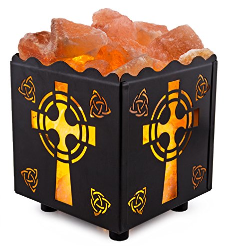 Crystal Decor Natural Himalayan Salt Lamp in Cross Design Metal Basket with Dimmable Cord