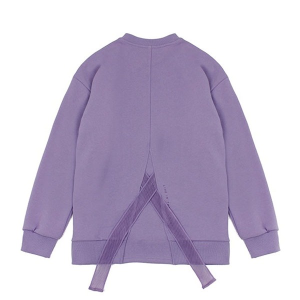 기본 루즈한 핏의 맨투맨 티셔츠에뒷판 트임과 리본으로 포인트를 준 여성 맨투맨 티셔츠 입니다.봄에 어울리는 퍼플과 깔끔한 블랙 컬러로여러 아이템에 잘 어울리는 티셔츠 입니다.