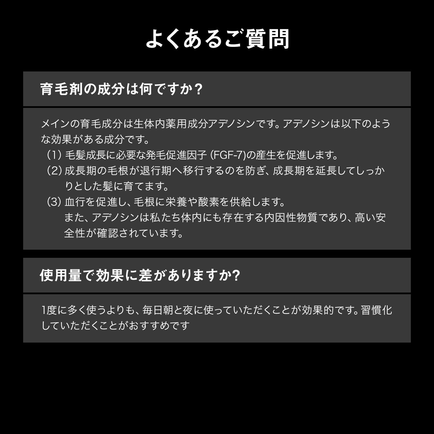 「販売名:S-AXエッセンスEX」 生体内薬用成分[アデノシン]を配合した発毛促進・育毛剤です。 発毛促進因子(FGF-7)の産生、毛根の成長期の延長、血行促進効果が発毛を促進させ、しっかりとした髪に育てます。 ※効能効果:育毛、薄毛、かゆみ、脱毛の予防、毛生促進、発毛促進、ふけ、病後・産後の脱毛、養毛