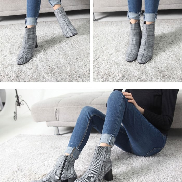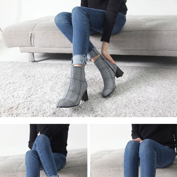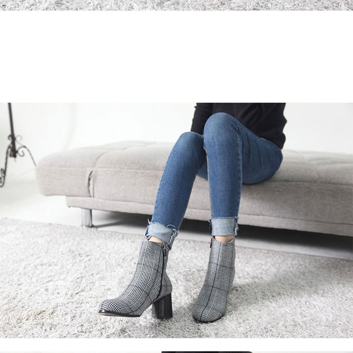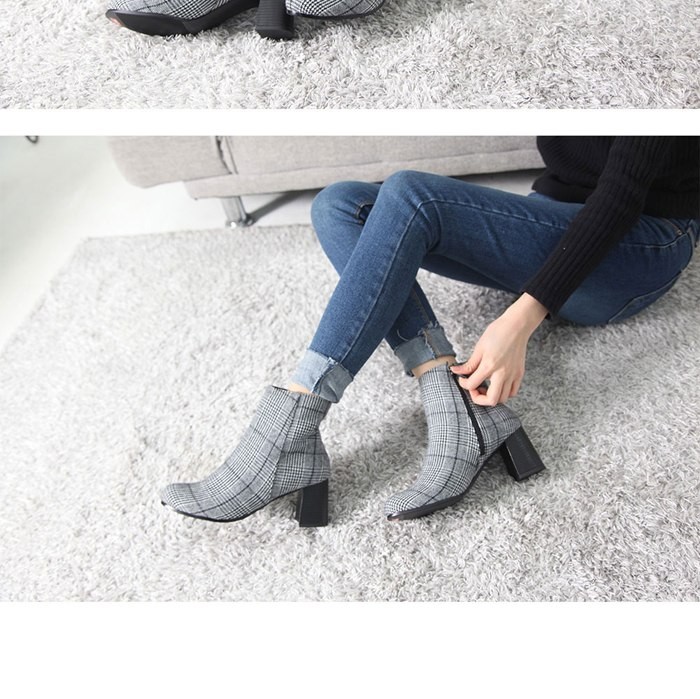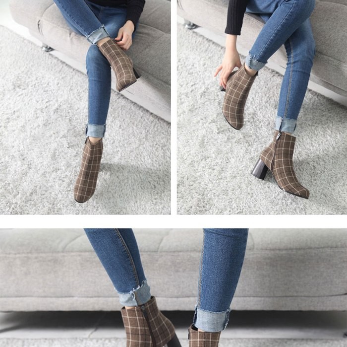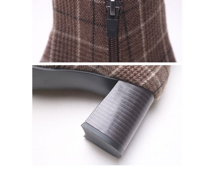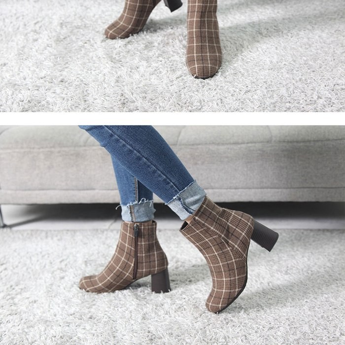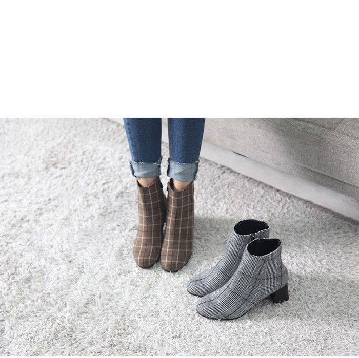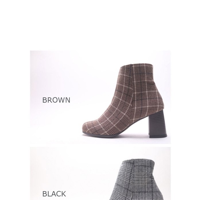 商品名:ブーティ レディース ブーティー チャンキーヒール 太ヒール チェック 2017 秋冬 ファッション 靴 婦人靴