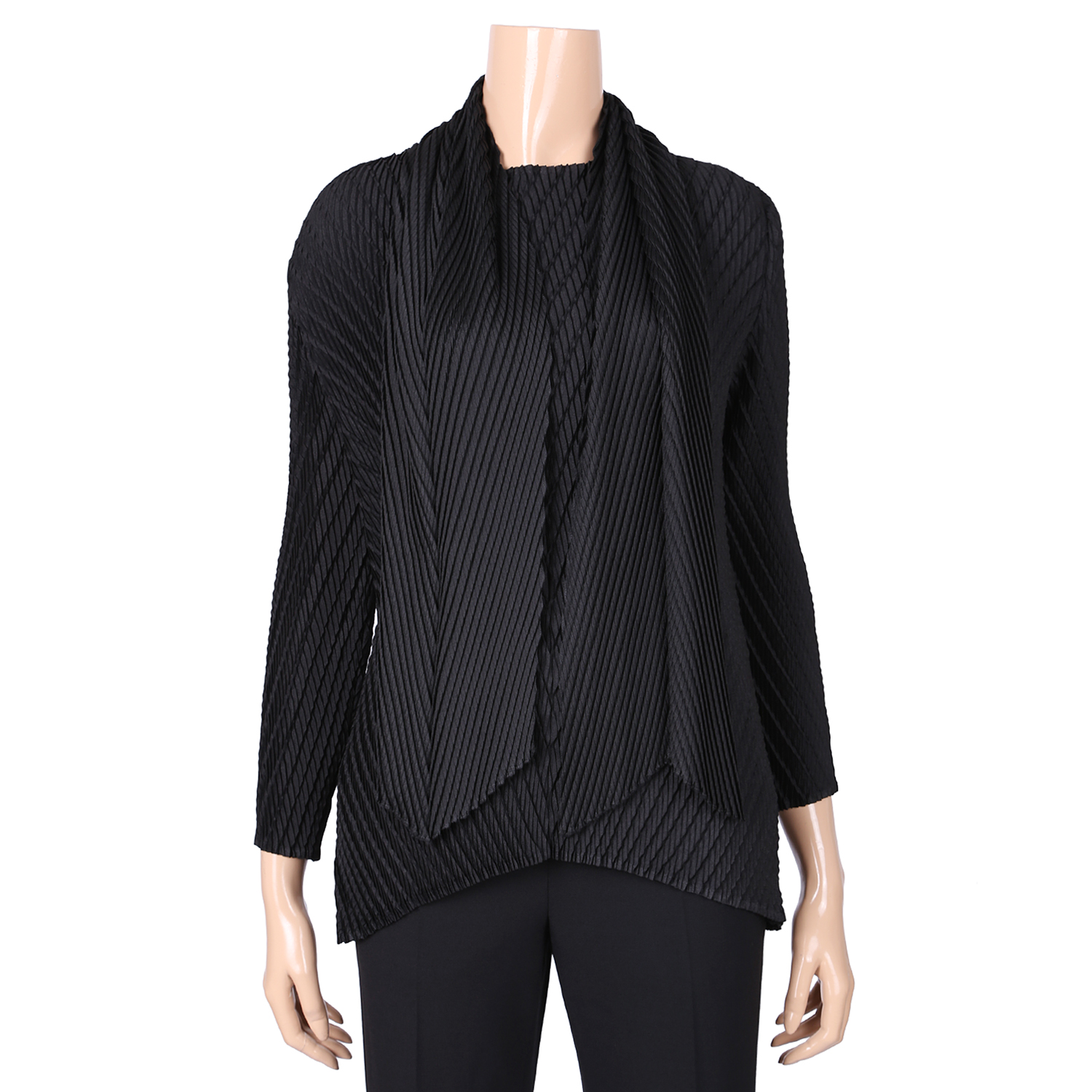 이 제품은 단아하고정갈하며 세련되며 심플하고 깔끔한 탈부착스카프배색의 멋진플리츠 블라우스 입니다