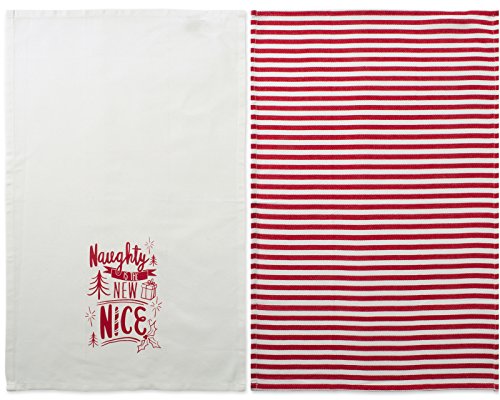 DII Cotton Christmas Holiday Dish Towels, 18x28" Set of 2, Decorative Oversized Kitchen Towels, Perfect Home and Kitchen Gift-Naughty Nice