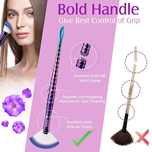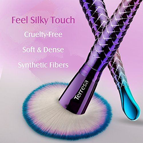 Terresa Mermaid Makeup Brushes Set, Face Foundation Blush Contour Fan Brush for Liquid Powder Makeup, Eyebrow Eyeshadow Lip Brush, Gradient Handle,...