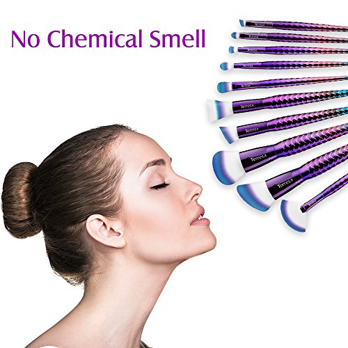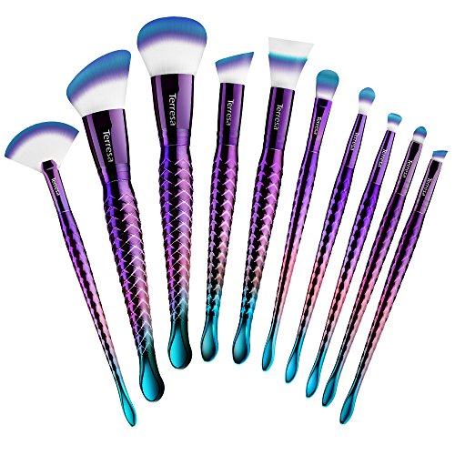 - Start The New Day From A Smile: Mermaid and unicorn handle shape, unique gradient visual design, no more stiff brush, you’ll fall off in love with Terresa makeup brush set.