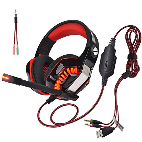 Beexcellent GM-2 Gaming Headset with Mic, PS4 PC Gaming Headphones Sound Clarity/Noise Cancelling/Stereo Computer Bass Earphone Volume Control LED Light for Xbox One PlayStation 4 Laptop Smartphone