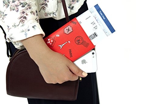 Product Description cute and colourful passport case. 5 styles featuring various travel-themed patterns. made of a soft synthetic leather and has a water resistant coating for extra protection. 4 pockets including 2 card slots, 1 passport pocket, and 1 boarding pass pocket. the passport pocket also features built in RFID to protect your information. 0