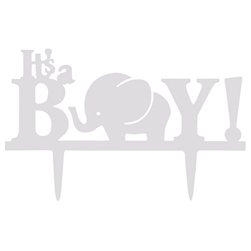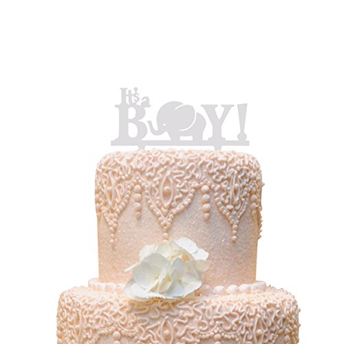 Grinde NO Personalized Elephant Kid's Birthday Cake Topper It's a Boy White