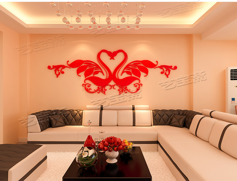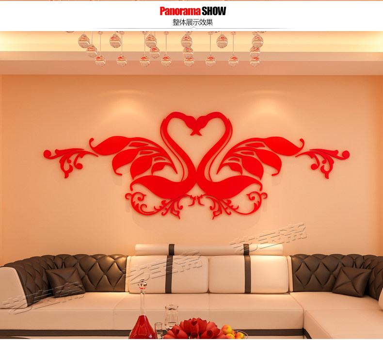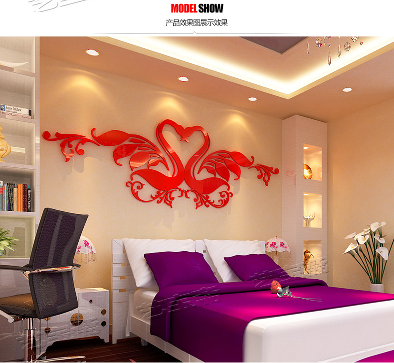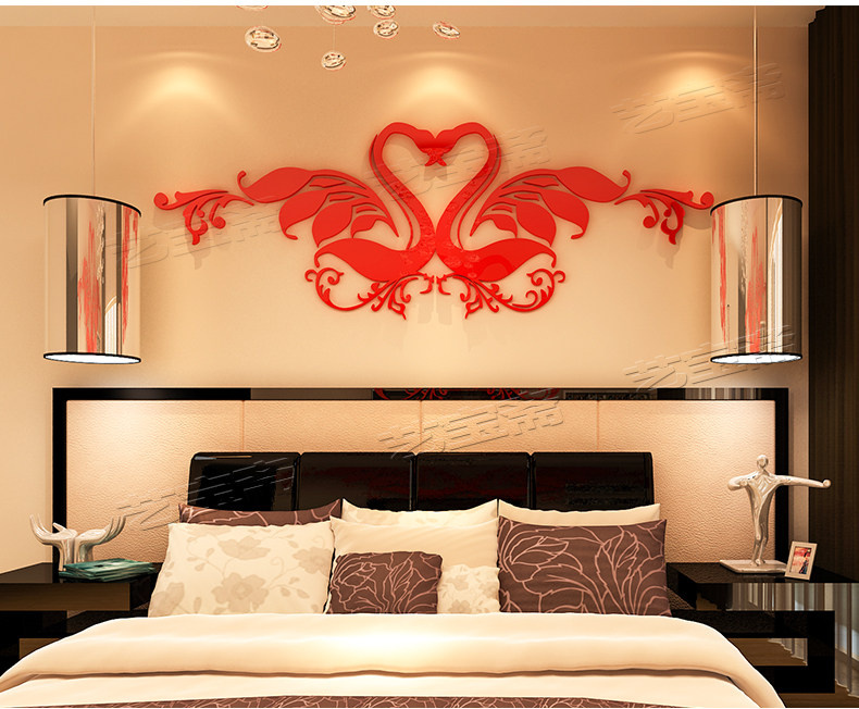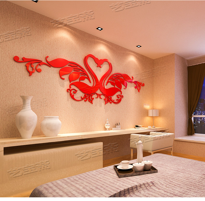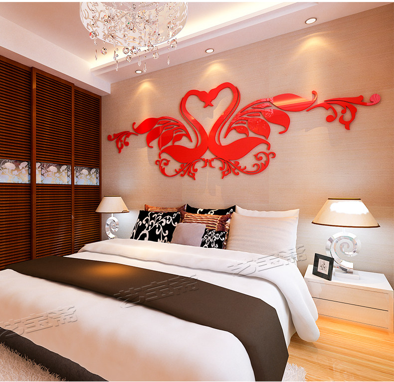 创意水晶亚克力3D立体墙贴画卧室床头背景墙结婚婚房情侣房间装饰