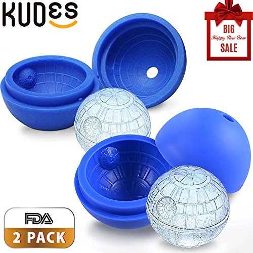 KUDES 2-Pack Star Wars Death Star Silicone Sphere Ice Ball Maker Mold, Ice Mold Tray for Drinks (Blue)