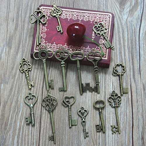 N'joy 15PCS Vintage Skeleton Keys, Mixed Steampunk Keys, Antique Bronze (X15B)