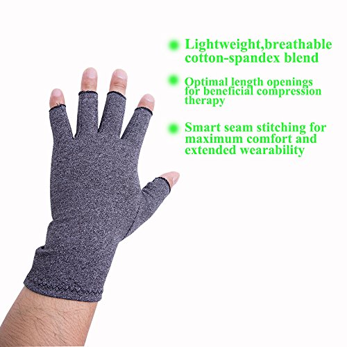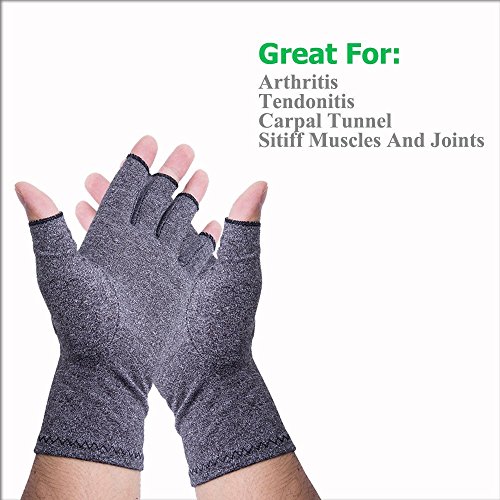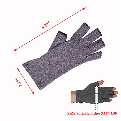 Studio : Dr.Jin Publisher : Dr.Jin Binding : Health and Beauty Product Description Arthritis Gloves for Arthritis Pain Relief Are you suffering from Arthritis or Carpal Tunnel hand or wrist issues ? Or are you sometimes feel hand pain such as stiff and sore muscles, joints and tendons in your daily lives?Don't Worry,? it has been designed, a helpful compression gloves to help you ,this gloves? does contain enough compression to help relieve your hand pain.? And it's open-finger design makes it can be wore in your daily works freely.It's suitable for sports, athletic activities, pain relief, and everyday comfort.? You can't miss it ,your best choice. ?Features: ◆Open Finger Design:These gloves have holes in each fingertip,so you can stil perform daily tasks while wearing them. ◆Pain Relieve Compression:Form-fitting material embraces your hand and provides gentle compression to alleviate pain cause by arthritis. ◆Smart Seam Design:Produced with minimal stitching to eliminate irritation. ◆All day wear:Made of lightweight,breathable material so you can comfortably wear them all day long. ?Product Functions: ?These fingerless compression gloves will support great help for those who suffered from rheumatoid arthritis, ?osteoarthritis, rheumatism and carpal tunnel syndrome. Whether you are in garden , in office, or doing some other things, ?these breathable soft gloves will bulk up your life. ?Sizing: ?Length=8.27'(inch),Width=3.15'(inch) ?For best fit, see sizing chart in the images above for the correct size. ?Material: ?45% Cotton, 45% Polyester, 10% Spandex ?DISUPPO's Guarantee: 90 Day guarantee for our unconditional refund. ?Order now without doubt. 0 |