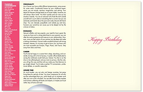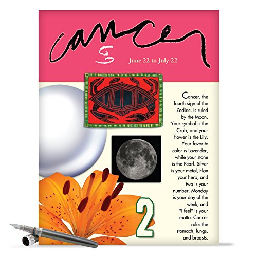 J9445 Cancer Astrological Sign Birthday Card - Famous People, Moto, Personality, Stone, Symbol, Planet, Color, Flowers and Dates (Extra Large 8.5'' x 11'' w/ Envelope)