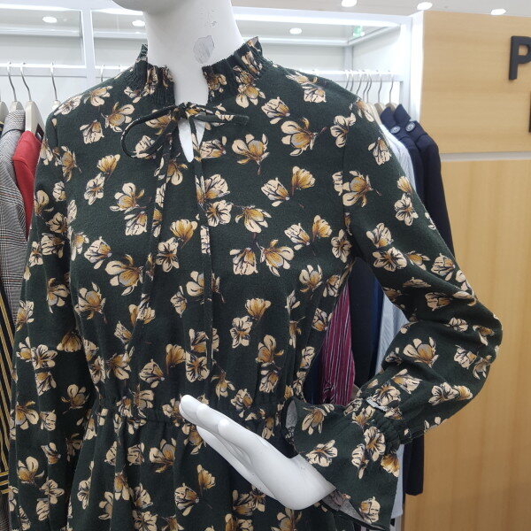반폴라프릴플레어 원피스예요~허리라인도 밴딩으로 되어잇고 소매부분도 밴딩으로 되어있어서 귀여워보이는스타일마네킹컬러는 카키예요