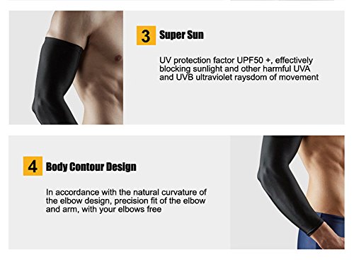 -. Feature : 1 pair/set, UV Protection; 998-Percent, high tech 3D weaving design. / Cooler than bare skin perfect for all outdoor and indoor activities even work-space. / Reduce muscle vibration in the movement process, reduce the energy loss. / Material moisture absorbing perspiration, instant eduction sports sweat, wearing more comfortablly. / In accordance with the natural curvature elbow design, fit closely elbow and arm, let the elbows moving naturally.