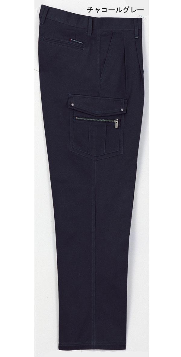 仕様イタリアン起毛、ツータックスリムシルエット、雨蓋付カーゴポケット(右側ファスナーポケット)、後右ポケットブランドネーム付、後左雨蓋付ポケット、季節:秋・冬