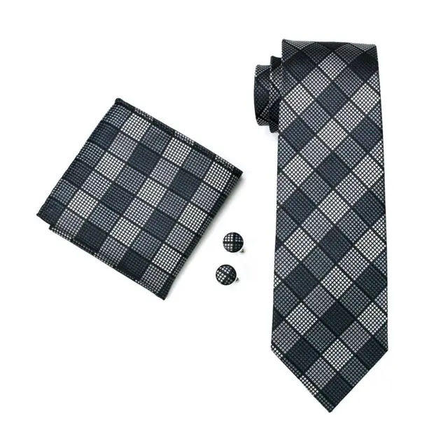 LS-1017 남성 넥타이 2016 뜨거운 판매 격자 무늬 패션 100% 실크 자카드 짠 넥타이 Handky 커프스 세트 남성 정장 웨딩 파티
