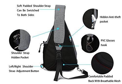 Wear a Number of Ways: Wear this sling bag over either shoulder comfortably, or in the front across the chest to deter thieves. Includes convenient front cell phone pocket with headphone access.