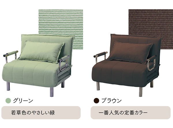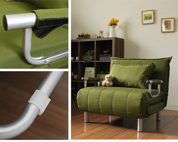 【商品名】折りたたみソファーベッド/カウチソファー 【シングルサイズ】 肘付き 6段階リクライニング 『ビータII』 抹茶グリーン