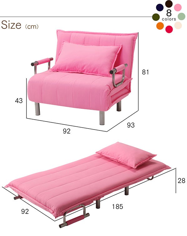 【ソファ時】幅92×奥行93×高さ81cm(座面高43) 【ベッド時】幅92×奥行き185×高さ28cm