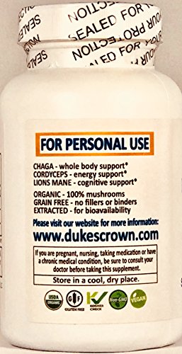 -. Feature : GENUINE MUSHROOMS as used in Traditional Chinese Medicine (TCM)...NOT mycelium on grain! Unique, proP.R.Ietary mix available ONLY from Duke's Crown. / Mushrooms are THE ORIGINAL SUPERFOOD! Our exclusive formula helps support your IMMUNE SYSTEM, COGNITIVE FUNCTION, and ENERGY & STAMINA. / 3 POWERFUL MEDICINAL MUSHROOMS provide broad range of benefits without unnecessary dilution. How much of each mushroom's benefits can you be getting from products containing 5, 7,10 (or more) different mushroom species?