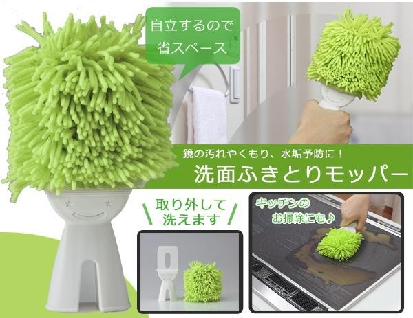 | 飛び散った水滴を素早く拭き取ることができるハンディタイプのモップです。素材にはマイクロファイバーを使用。自立する設計なので省スペース♪モップ部分は取り外してお洗濯できます。 |