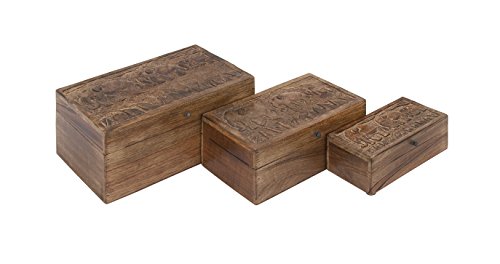 Deco 79 30954 Wood Box Elephants (Set of 3), 8"/10"/12"